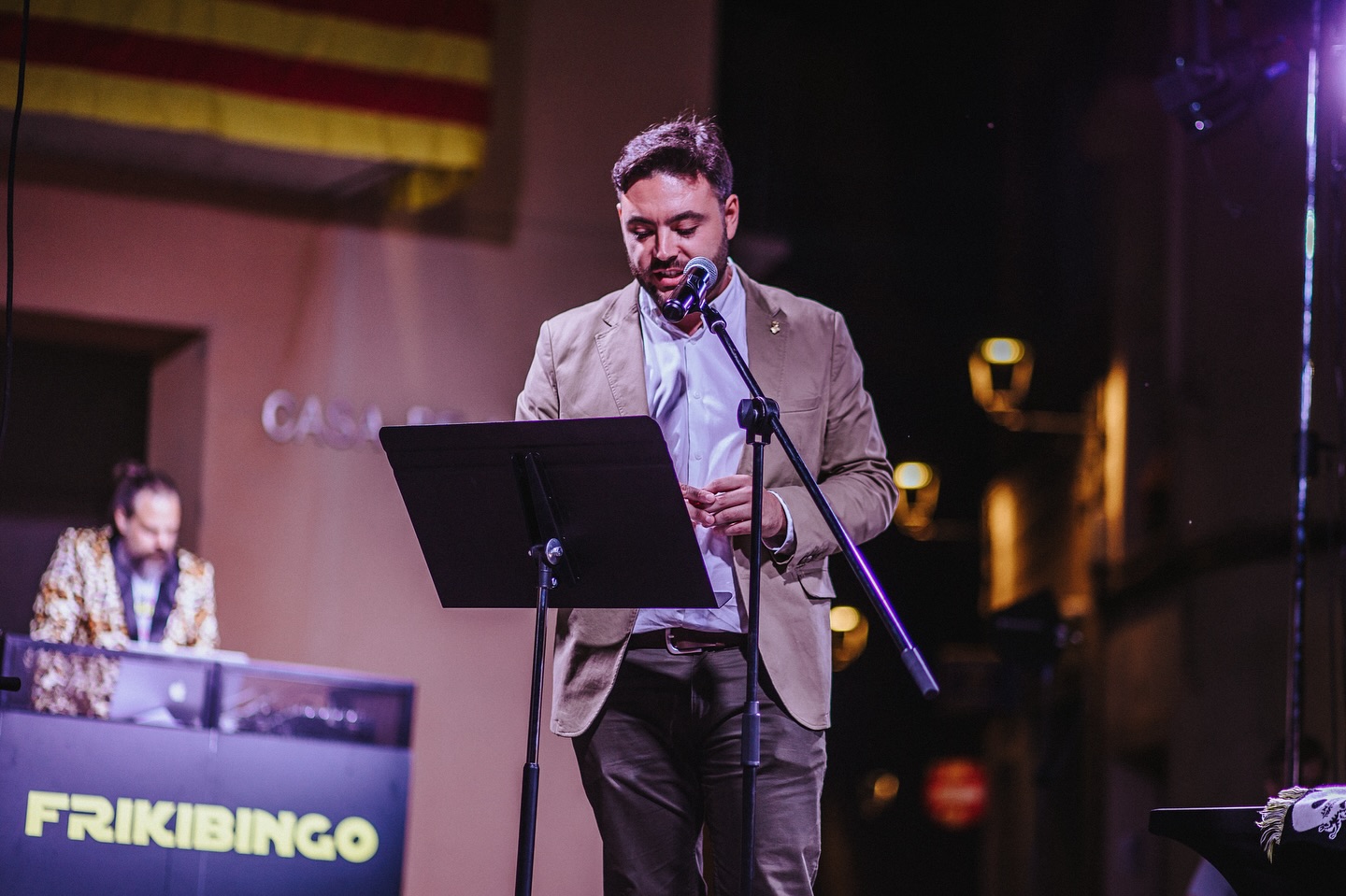 Seguidament, a la plaça de la Vila, va tenir lloc el tradicional Pregó, enguany a càrrec de Frikibingo. El públic assistent va gaudir d’una molt bona estona amb un espectacle ple de sorpreses, música, balls i un ambient festiu.