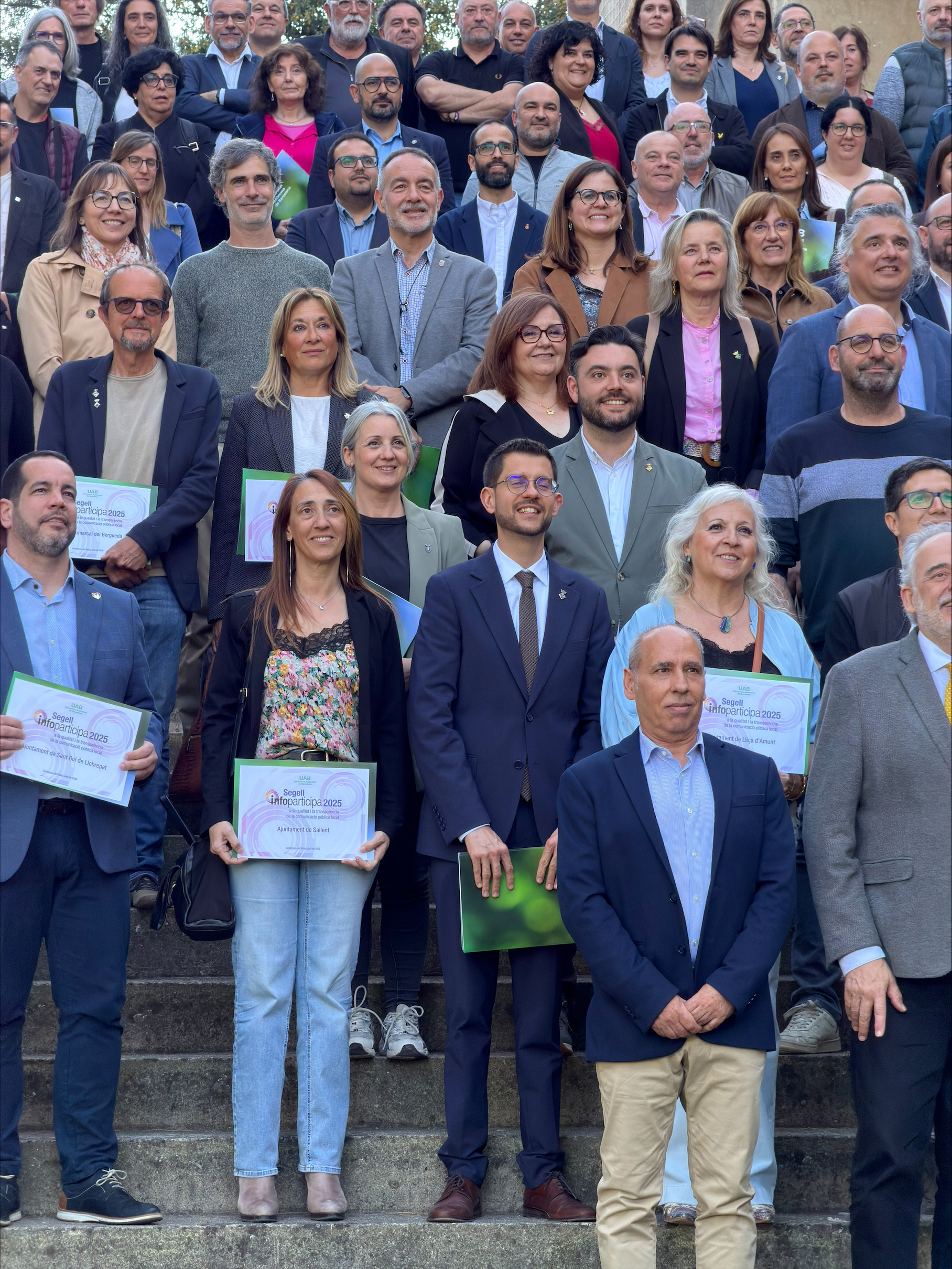 L’acte d’entrega dels premis InfoParticipa s’ha celebrat aquest dimarts, 14 d’abril, a la Sala d’Actes del Rectorat de la UAB. L’Alcalde, Oriol Ribalta, i la regidora Neus Solà, han estat els encarregats de recollir el distintiu que acredita l’excel·lent en transparència i qualitat de la comunicació pública a l’Ajuntament de Sallent. Des del 2019, Sallent participa en aquestes avaluacions amb l’objectiu de millorar any rere any la transparència i obtenir el Segell Infoparticipa. Aquests han estat els resultats des del 2019: 33,33% (2019), 51,92% (2020), 90,38% (2021), 98,08% (2022 i 2023) i 100% (2024).